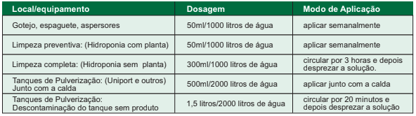 - Auxilia na limpeza e remoção de impurezas acumuladas em sistemas de irrigação, hidroponia e equipamentos.